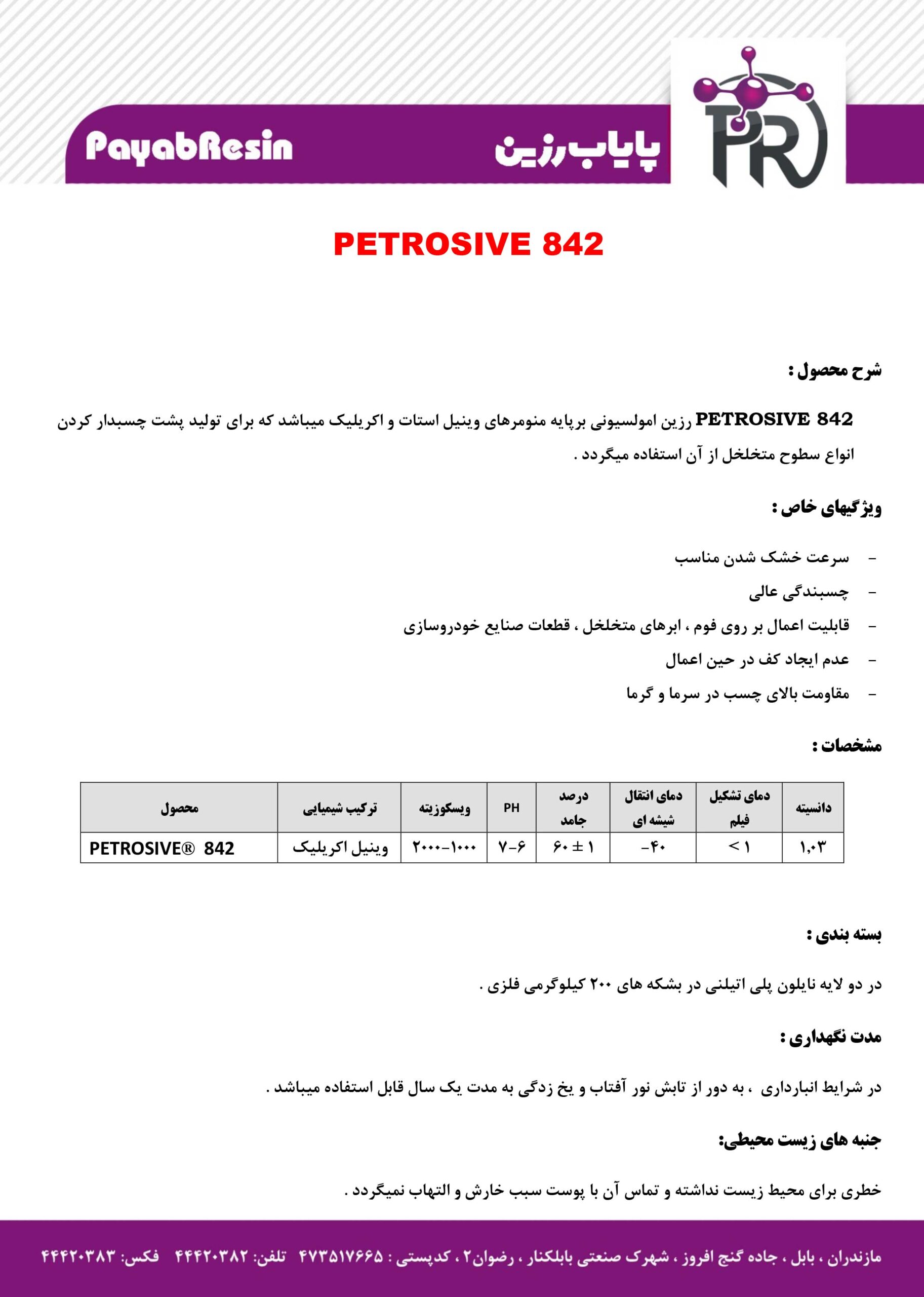 | 1.03 | فیلم شفاف ، چسبندگی بالا | 1 > | 60 | 6-7 | 1000-2000 | وینیل اکریلیک | PETROSIVE® 842 |