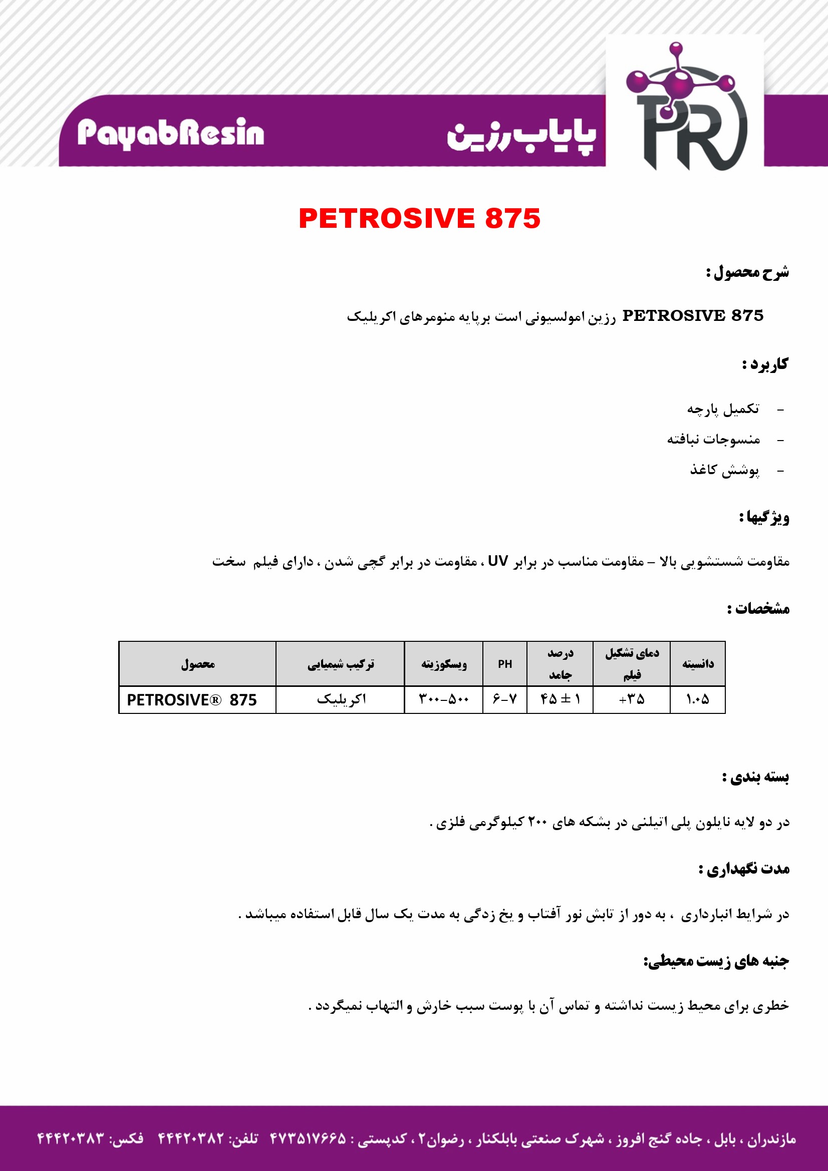 PETROSIVE 872 رزین امولسیونی است برپایه مونومرهای اکریلیک